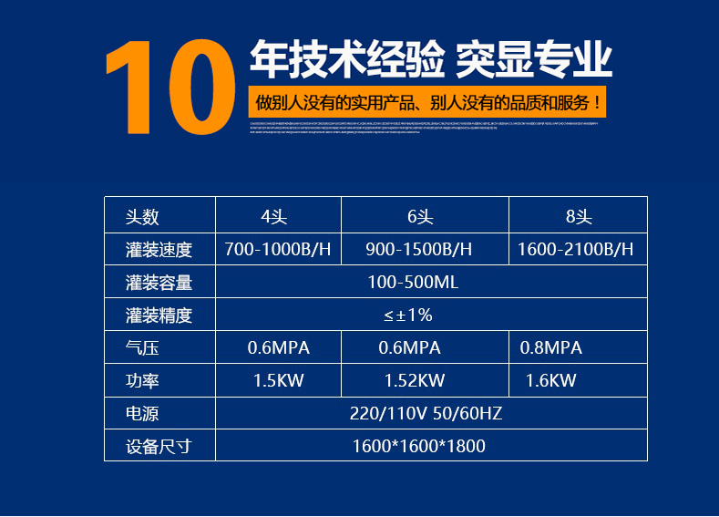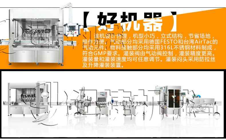 1、快速清洗、便于調整、容積缸體動作無極調速,適合不同規格、不同物料的灌裝。充填量一次調整完畢,每個容積缸體可分別微量調節,灌裝精度高。接觸物料的材料為316不銹鋼、硅橡膠、符合QS規范。