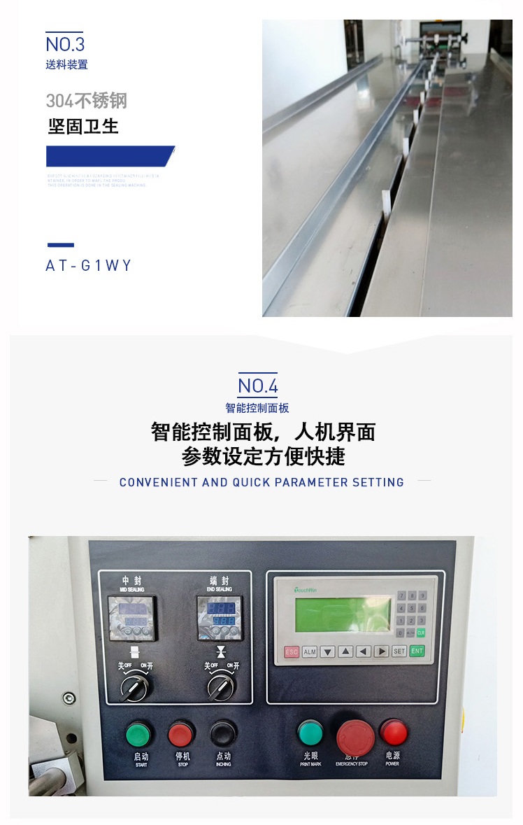 C、先進(jìn)的微電腦包裝控制器,優(yōu)良的人機(jī)對話模式,使速度、袋長、切點(diǎn)位置檢測等都可在界面上直接顯示。