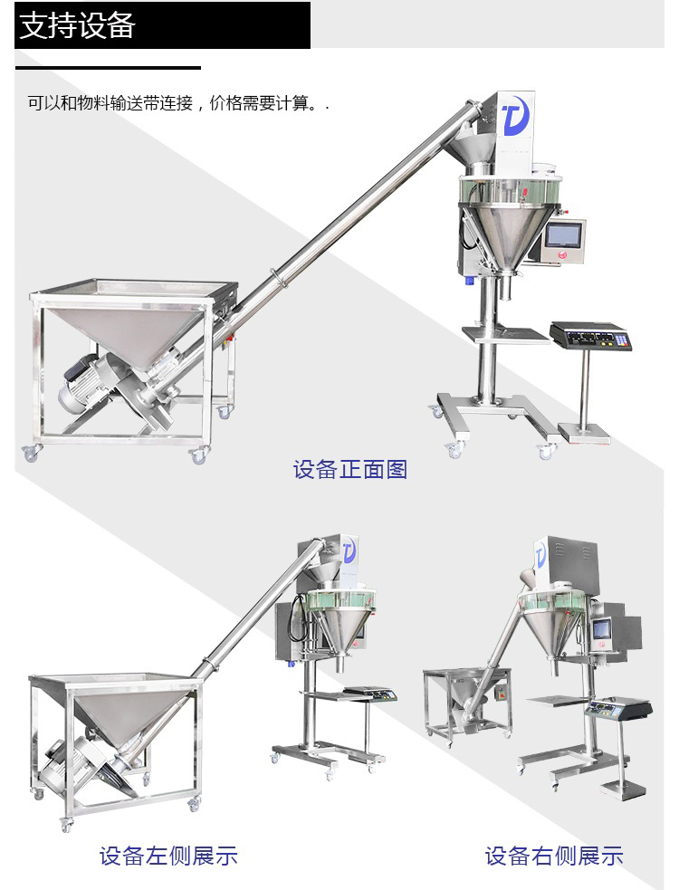D、包裝范圍寬:同一臺定量包裝機在5-5000g內通過電子秤鍵盤調整及更換不同規格的下料螺旋連續可調