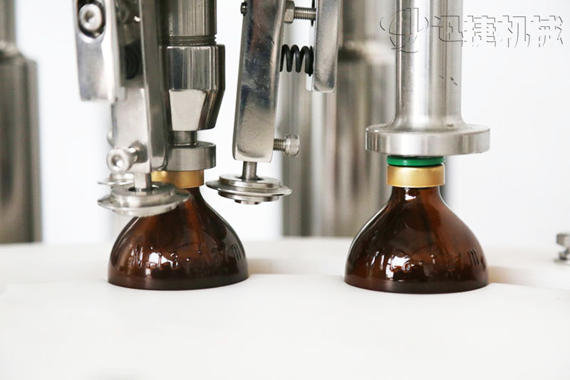 灌裝時灌裝頭潛入瓶底,緩慢上升,可有效防氣泡。灌裝針頭設有防滴漏裝置,確保灌裝精度,合格率大于99%。用柱塞式計量泵執行灌裝,精度高;泵的結構采用快接式拆卸機構,便于清洗、消毒。